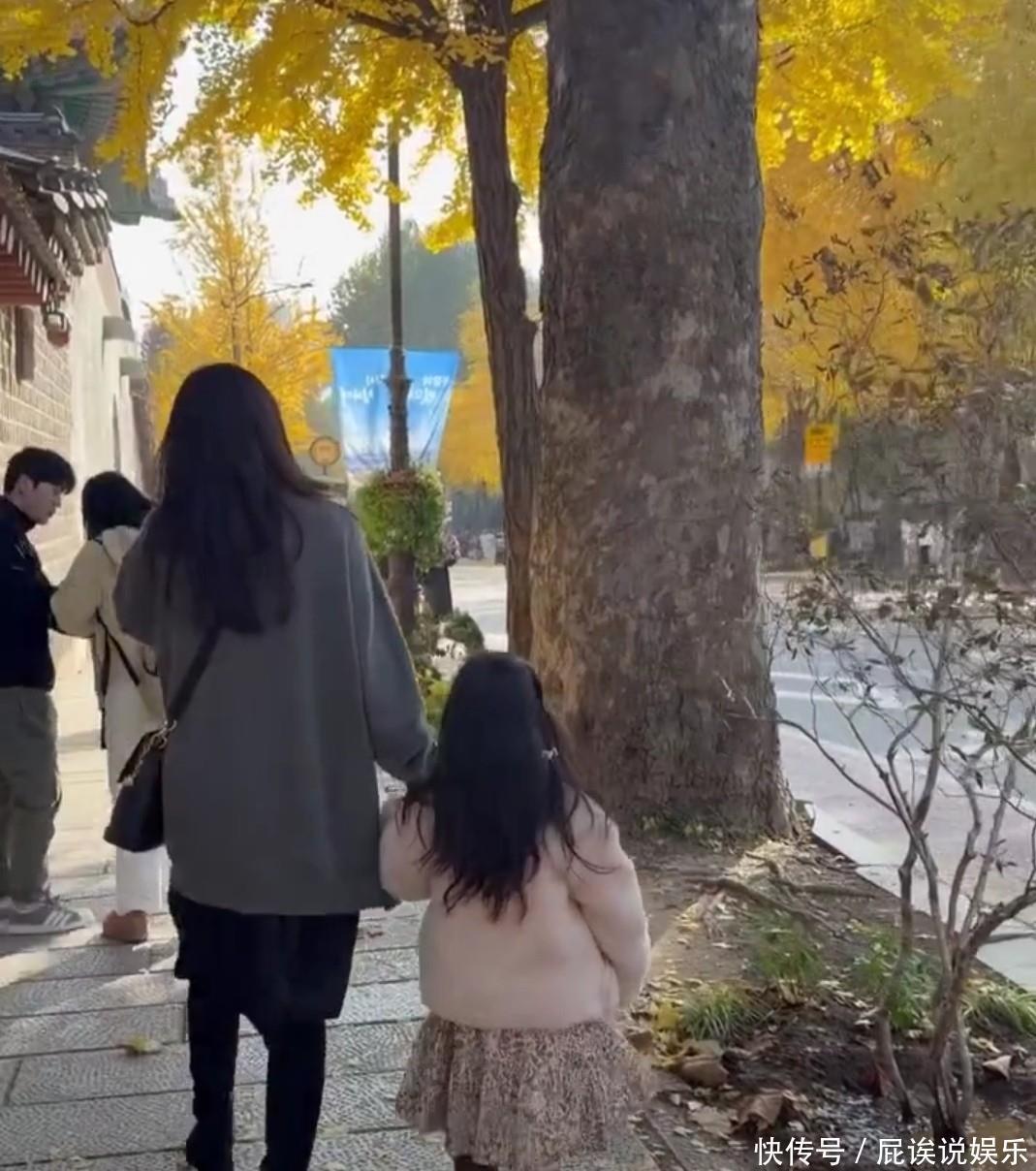 秋风瑟瑟,崔智友牵着5岁女儿Lua走在回家的路上,好有松弛感,旁边还有恋爱中的小情侣,天气不是很暖,但空气中却飘着甜蜜的气息。